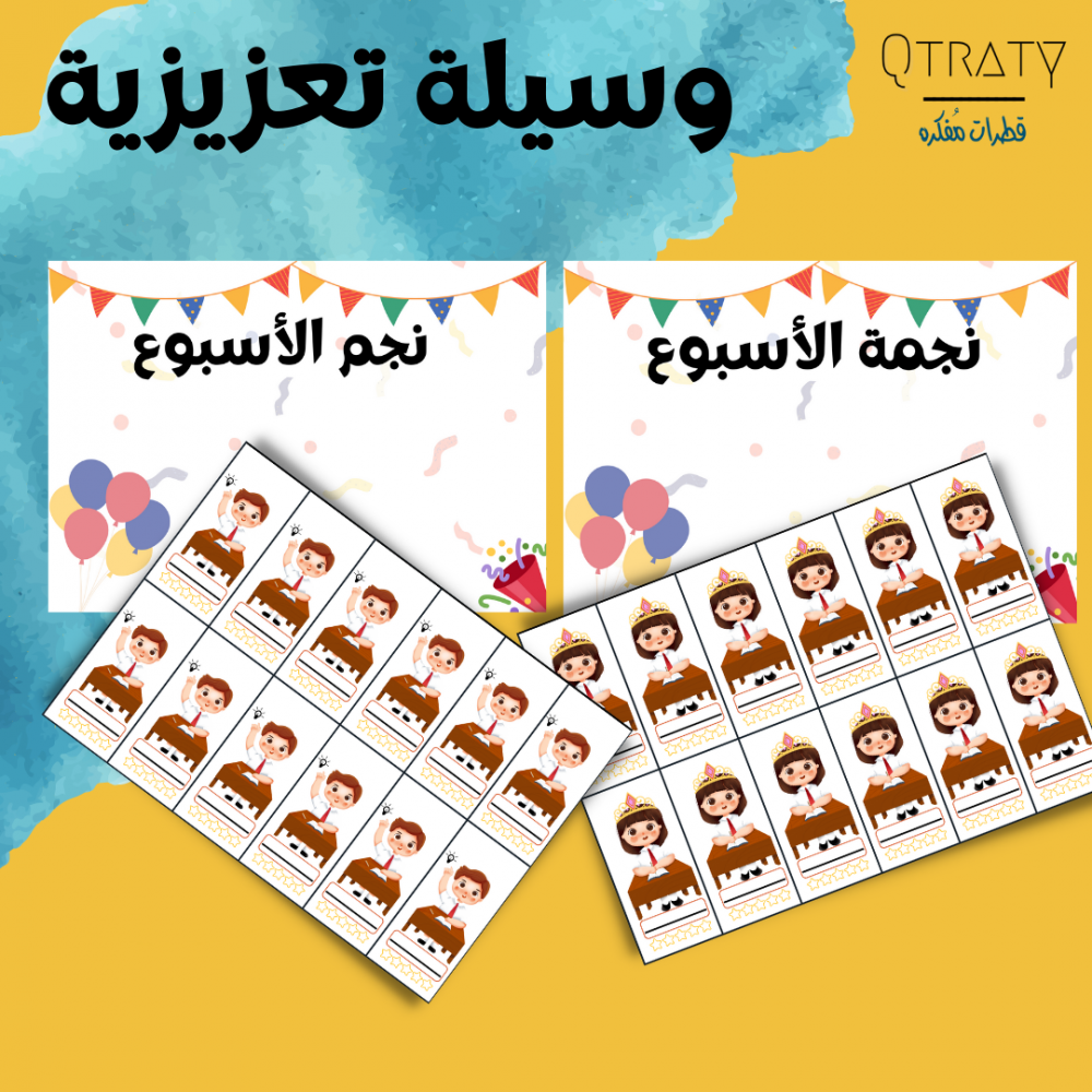 وبعد ذلك تكتبين اسماء الاطفال على كل صورة وتعلقينها على بورد بني واللوحة المكتوب بها نجمة الاسبوع او نجم الاسبوع تعلقينها فوقهم